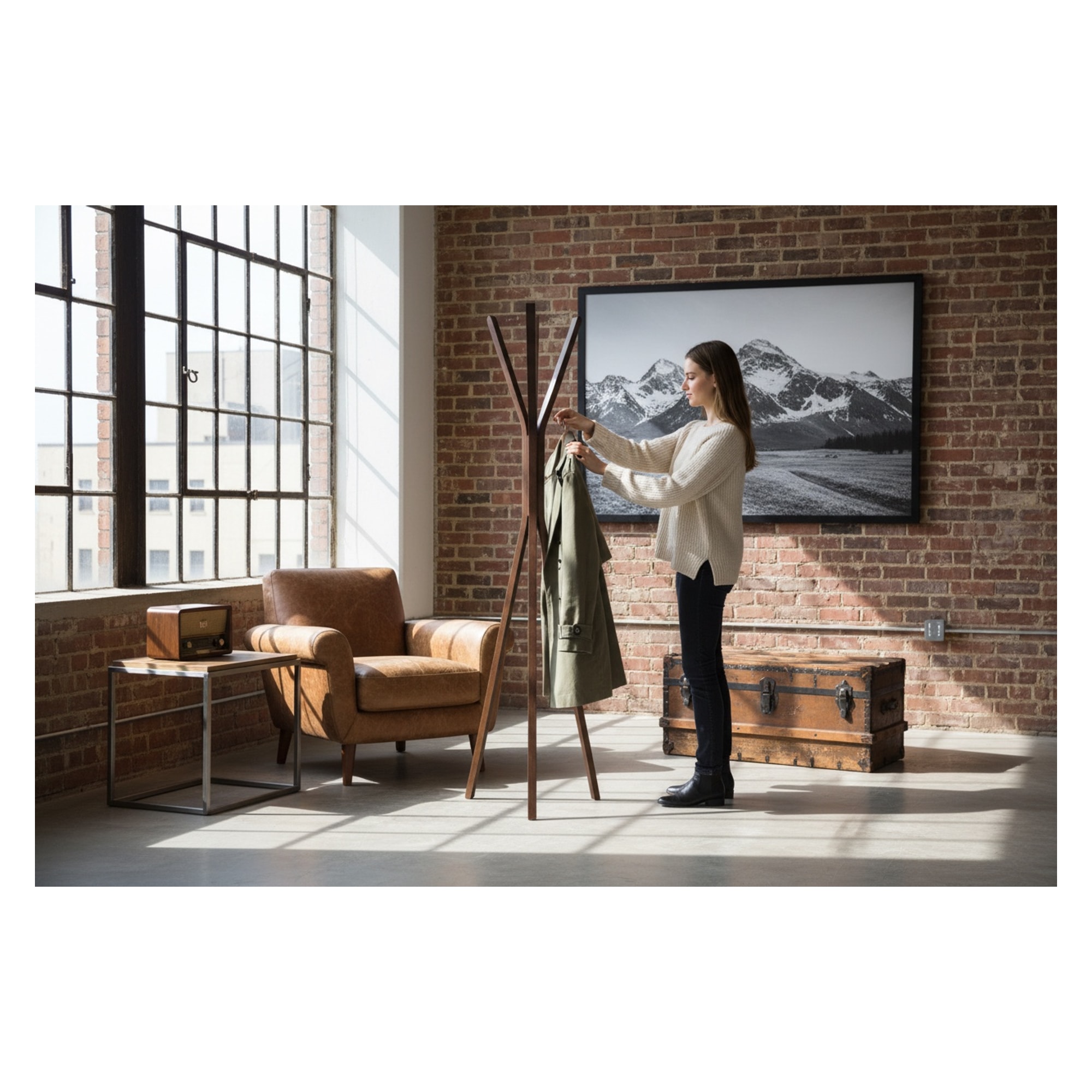 appendiabiti tripode in legno curvato
