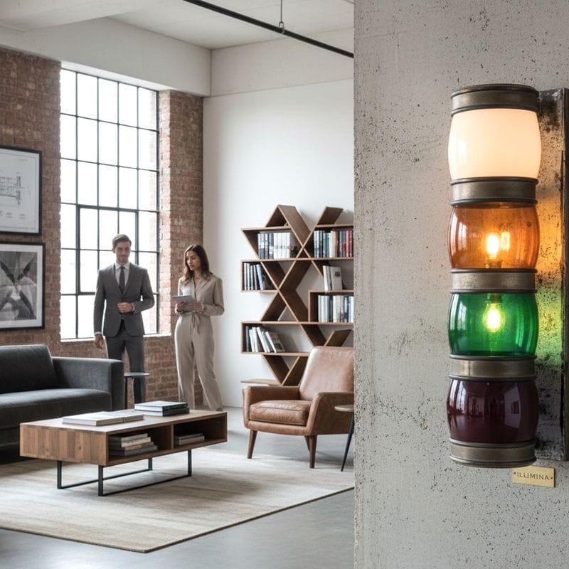 lampada applique industriale con vetri colorati