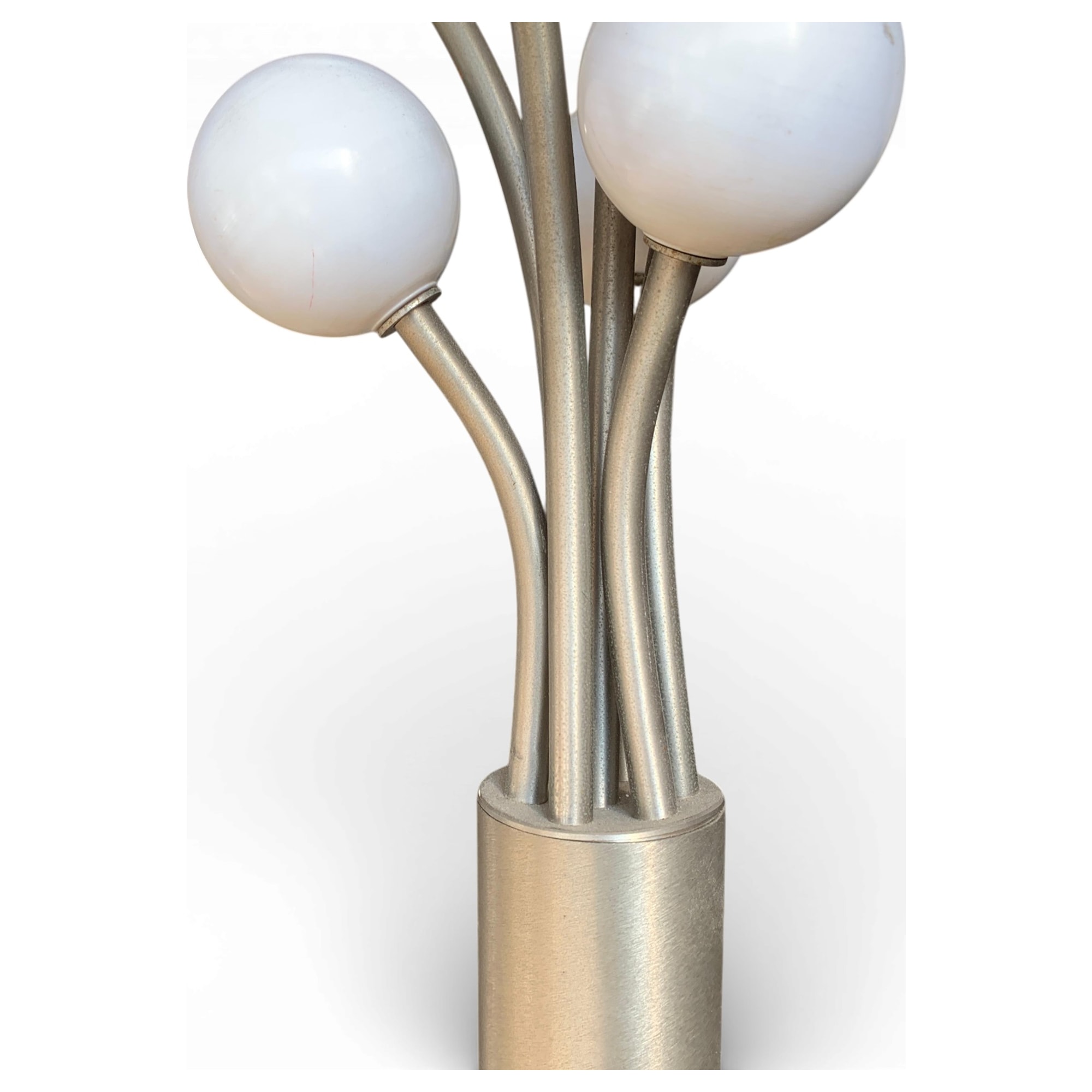 - Esempio tipico di design organico e funzionale del boom economico italiano, ispirato a motivi atomici/molecolari popolari nelle arti decorative postbelliche. Spesso attribuito genericamente a Stilnovo o alla scuola stilnoviana per la qualità delle soluzioni tecniche.
