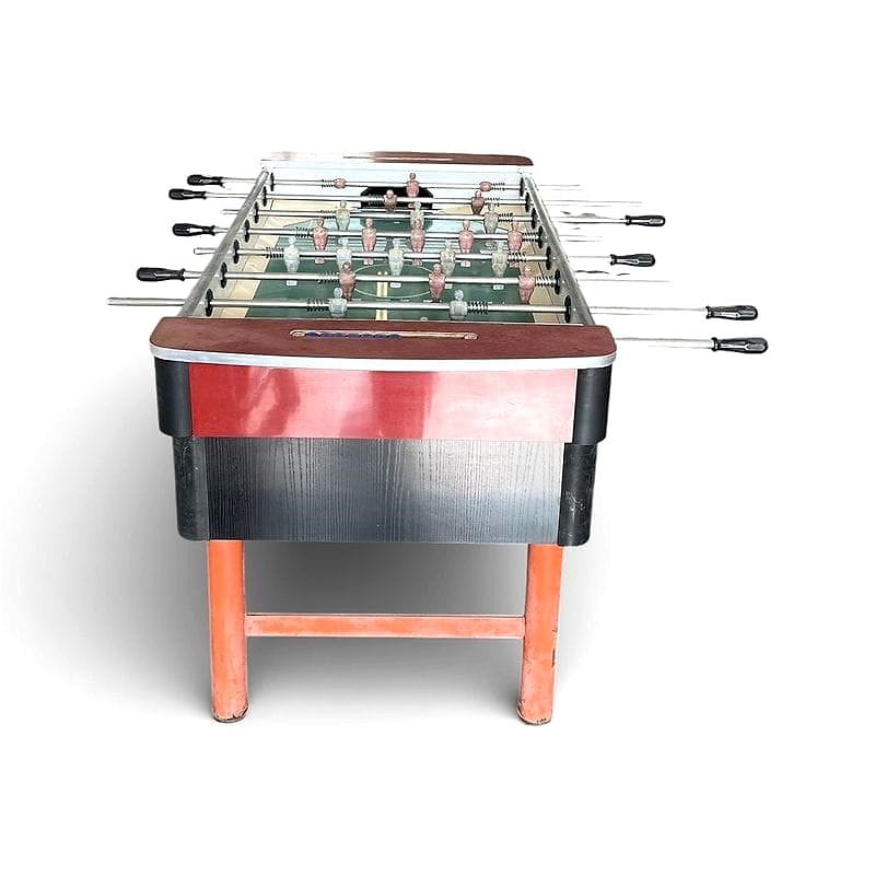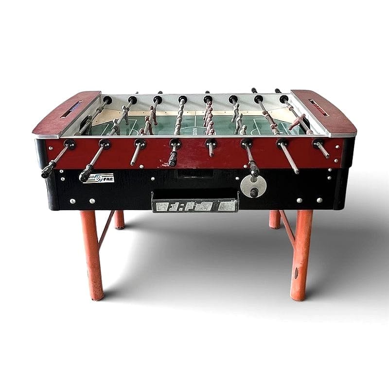 Questo calciobalilla da bar anni '80 porta con sé il fascino vissuto dei locali italiani di provincia. Gli omini in plastica sono originali e conservano la tipica cromia sbiadita di decine di sfide epiche.