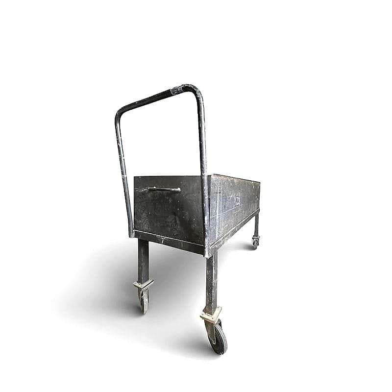 Nato per trasporti pesanti in officine o manifatture degli anni '50, questo carrello conserva sulla superficie i segni tangibili di decenni di lavoro. Ricercato dagli interior decorator per soluzioni bar o buffet outdoor, il suo fascino sta tutto nel contrasto tra funzionalità dura e reinterpretazione contemporanea.