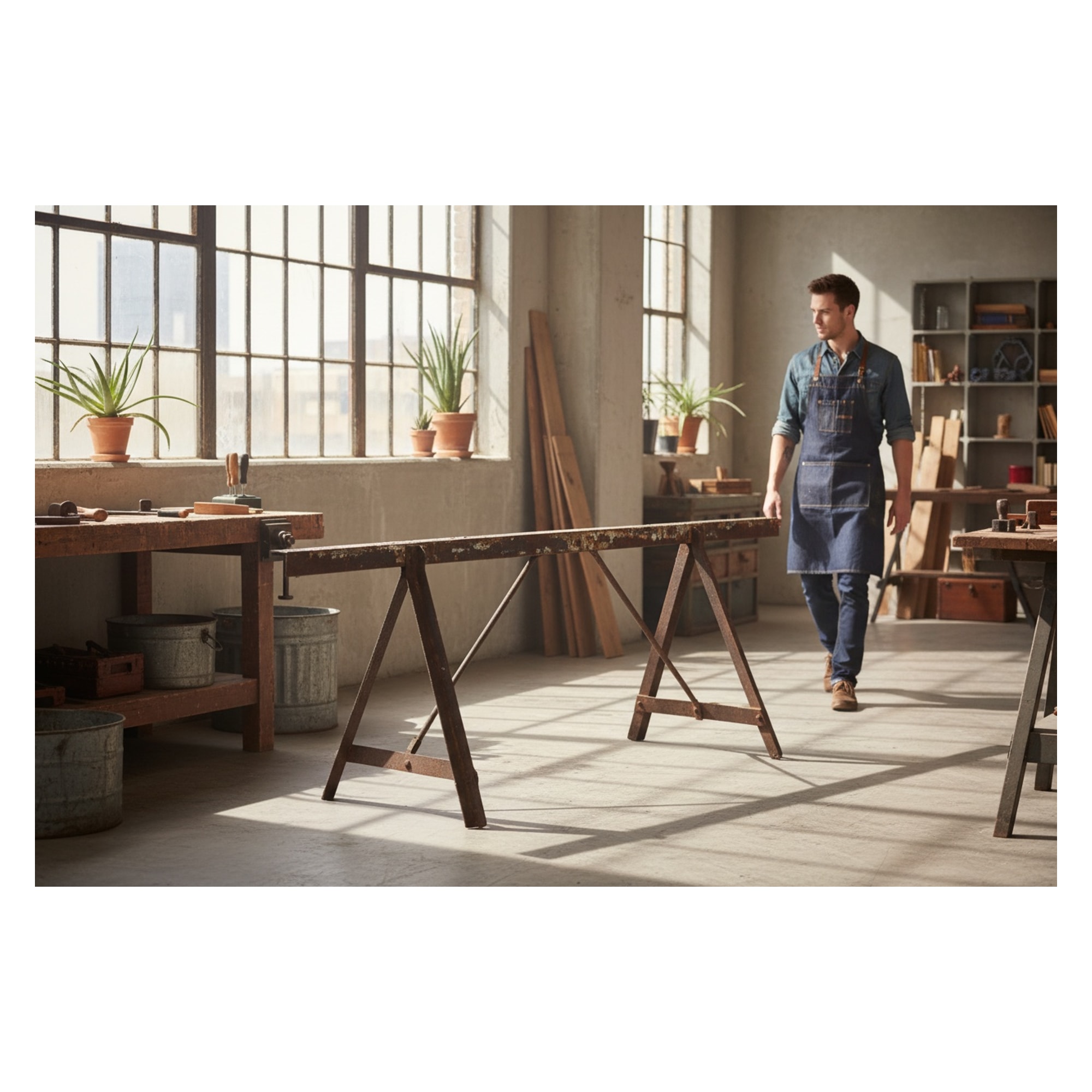 cavalletto industriale da falegnameria in ferro patinato