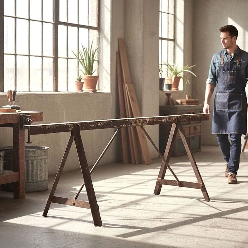 cavalletto industriale da officina in ferro patinato