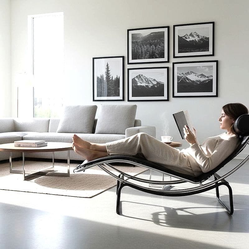 chaise longue a struttura tubolare nera