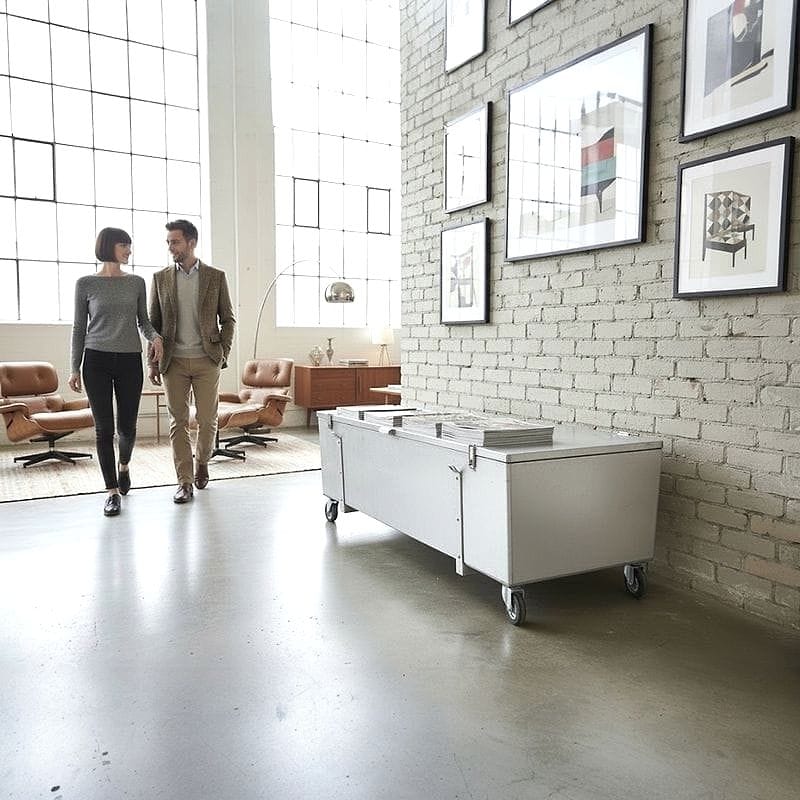 - Tipico contenitore italiano per cantieri e logistica ferroviaria degli anni '90; divenuto arredo di tendenza in contesto post-industriale dal 2015, spesso impiegato in allestimenti retail o interni loft come mobile TV, cassapanca, contenitore
