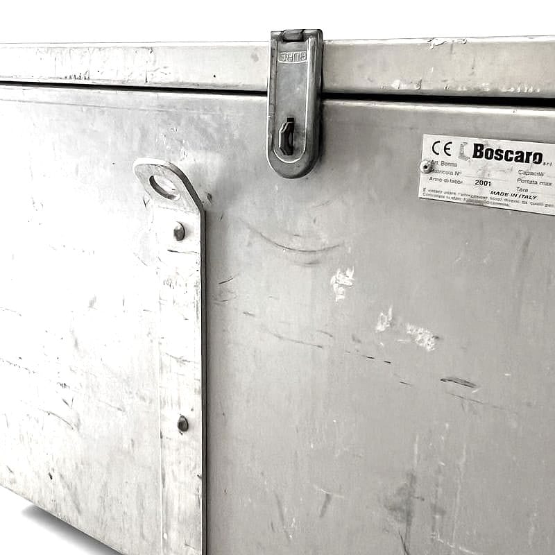 Questo baule industriale in alluminio Boscaro, concepito per trasporti gravosi in cantiere o in eventi catering oggi si reinventa come arredo domestico dallo spirito post-industriale. Le robuste barre di rinforzo e le saldature a vista sono testimonianza di una progettazione funzionale d’alta ingegneria italiana. Il dettaglio curioso: il gancio di sicurezza è lo stesso adottato sui container per trasporto aereo, a garanzia di massima chiusura. Conserva tutti i segni del tempo come veri distintivi di unicità.