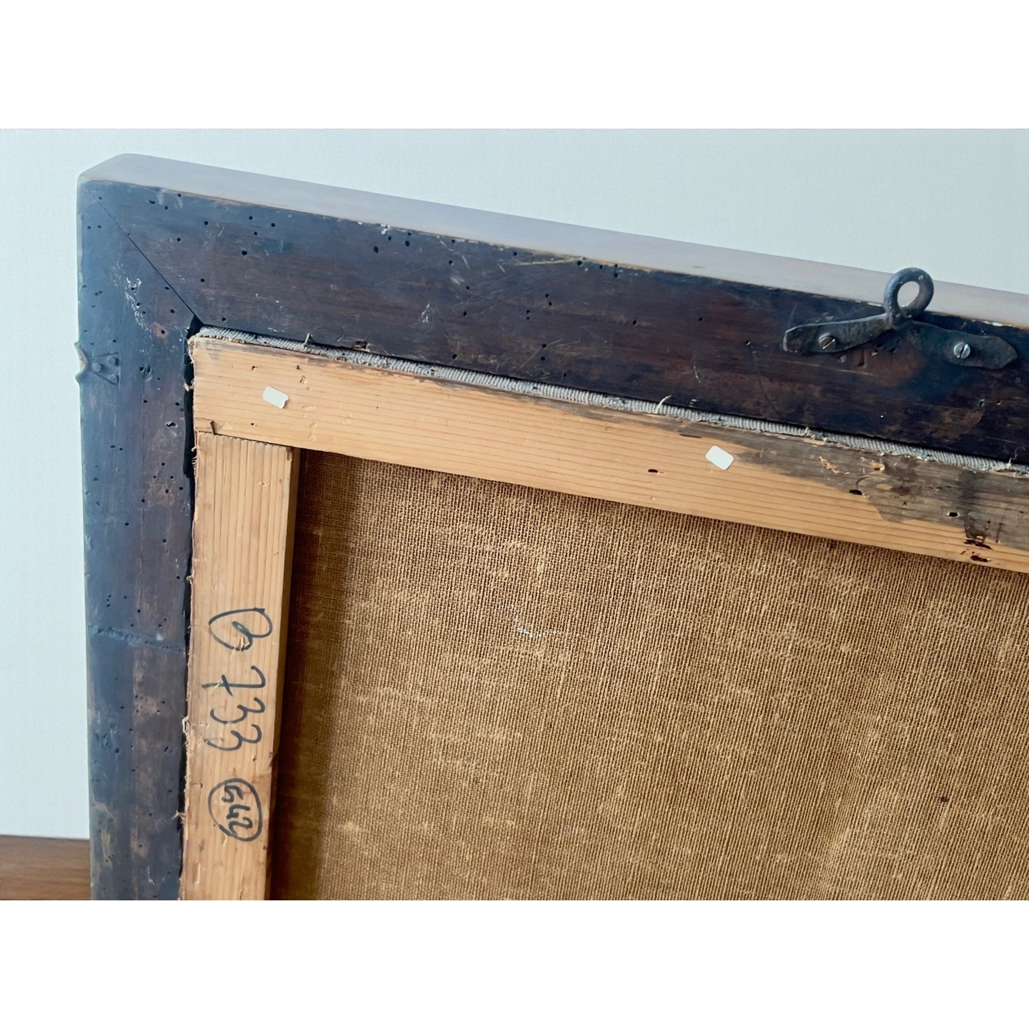 - Olio su tela tessuta a mano, cornice in legno massello dorato a guazzo con perlinature e profili ad intaglio a pastiglia