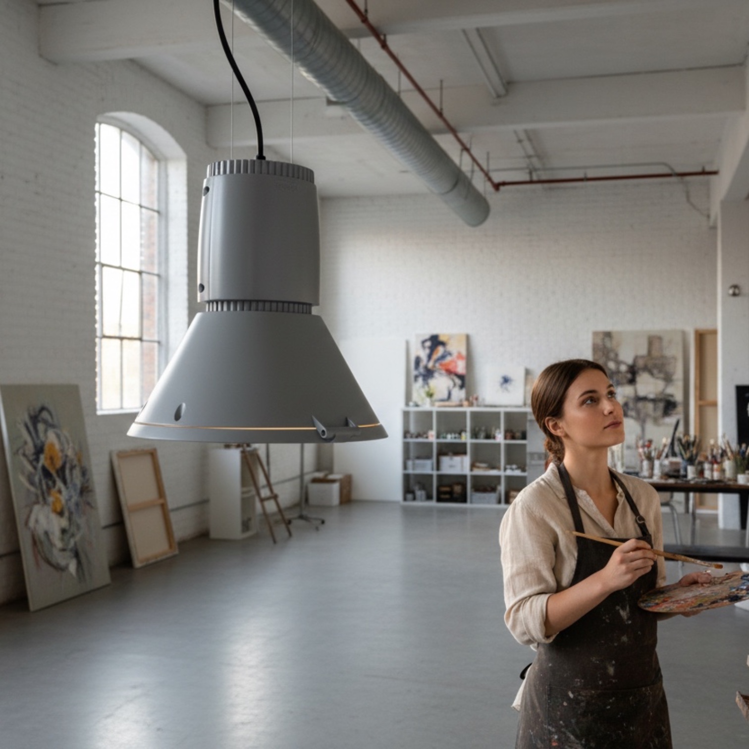 faro industriale a sospensione grigio