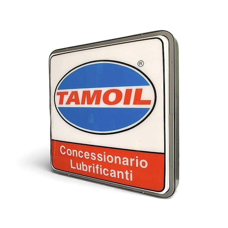 Insegna luminosa originale da concessionario Tamoil, degli anni '70 ancora funzionante. Il plexiglas era preferito per la sua leggerezza e resistenza agli agenti atmosferici.