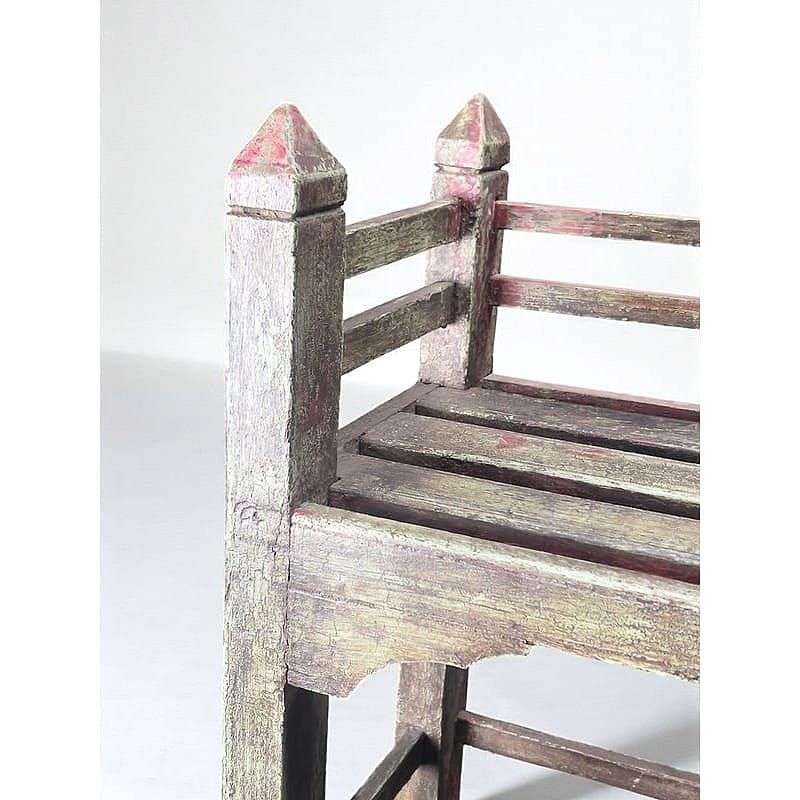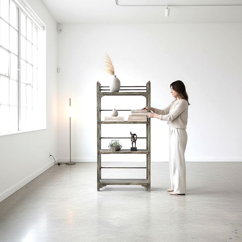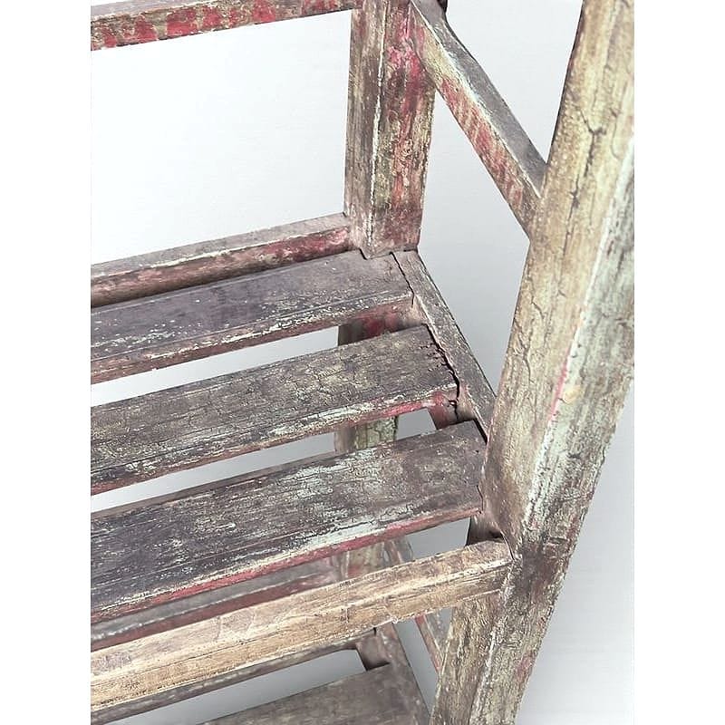 Questa libreria in legno massello presenta una splendida patina policroma con sfumature verdi e rossastre, che raccontano la storia del mobile nel corso dei decenni. La struttura, con montanti culminanti a cuspide e ripiani a stecche, richiama suggestioni architettoniche sobrie, donando un carattere deciso e naturale all'ambiente. I dettagli rivelano lavorazioni artigianali d'epoca, evidenti nelle giunzioni e nella texture vissuta delle superfici, che ne esaltano la genuinità e il fascino rustico. Perfetta per interni contemporanei o ambienti più classici, questa libreria si presta sia come contenitore funzionale sia come oggetto scenografico di grande personalità. Ideale per chi ricerca un pezzo unico e di carattere, capace di raccontare una storia attraverso ogni sua imperfezione.