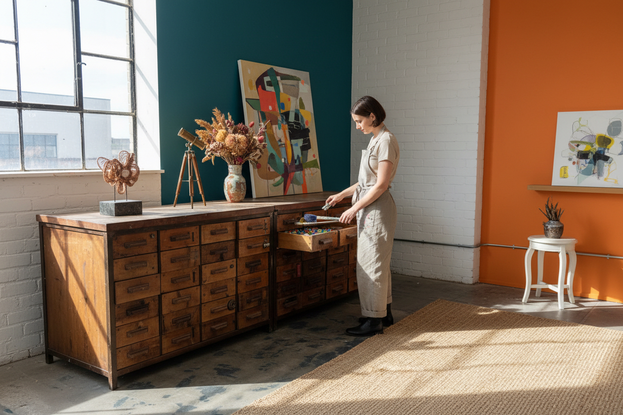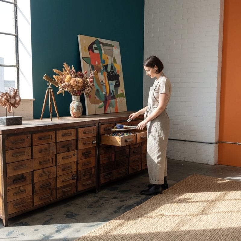 - Nati come arredi funzionali per laboratori e magazzini, tali mobili sono oggi ricercati per la loro estetica autentica e robusta, simbolo della rivoluzione industriale e della manifattura artigianale italiana di qualità.
