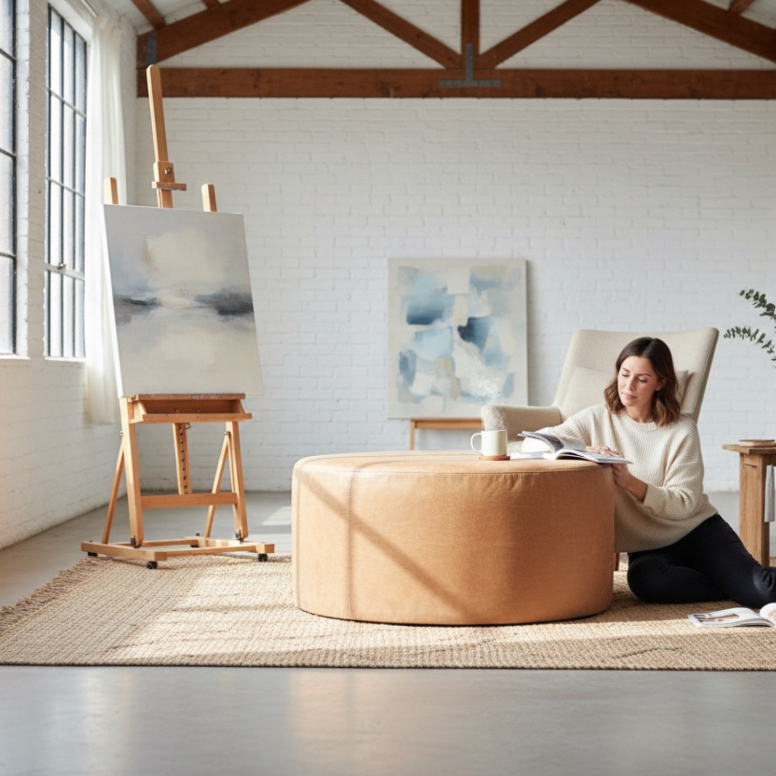 pouf cilindrico in pelle naturale