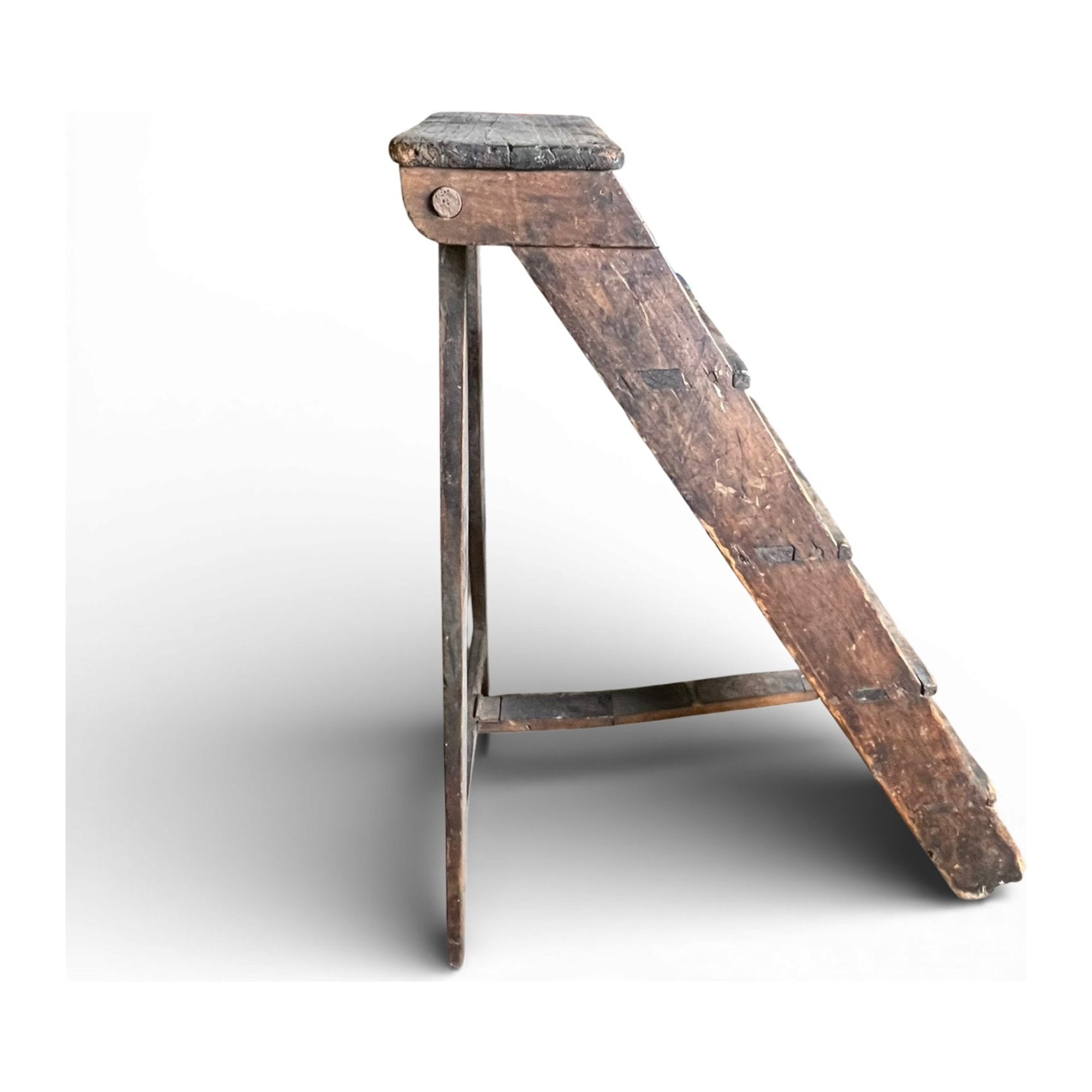Questa scaletta da serra conserva le tracce del tempo e dell’uso quotidiano tipiche degli antichi giardini d’inverno. La patina autentica testimonia decenni di utilizzo, soprattutto nei nurseries inglesi, dove oggetti simili erano strumenti preziosi per le cure botaniche. Il dettaglio raro sono i rinforzi laterali originali, spesso persi o sostituiti, che donano ancora stabilità sorprendente. Perfetta per valorizzare una collezione di piante o come display in un ambiente dal sapore autentico.