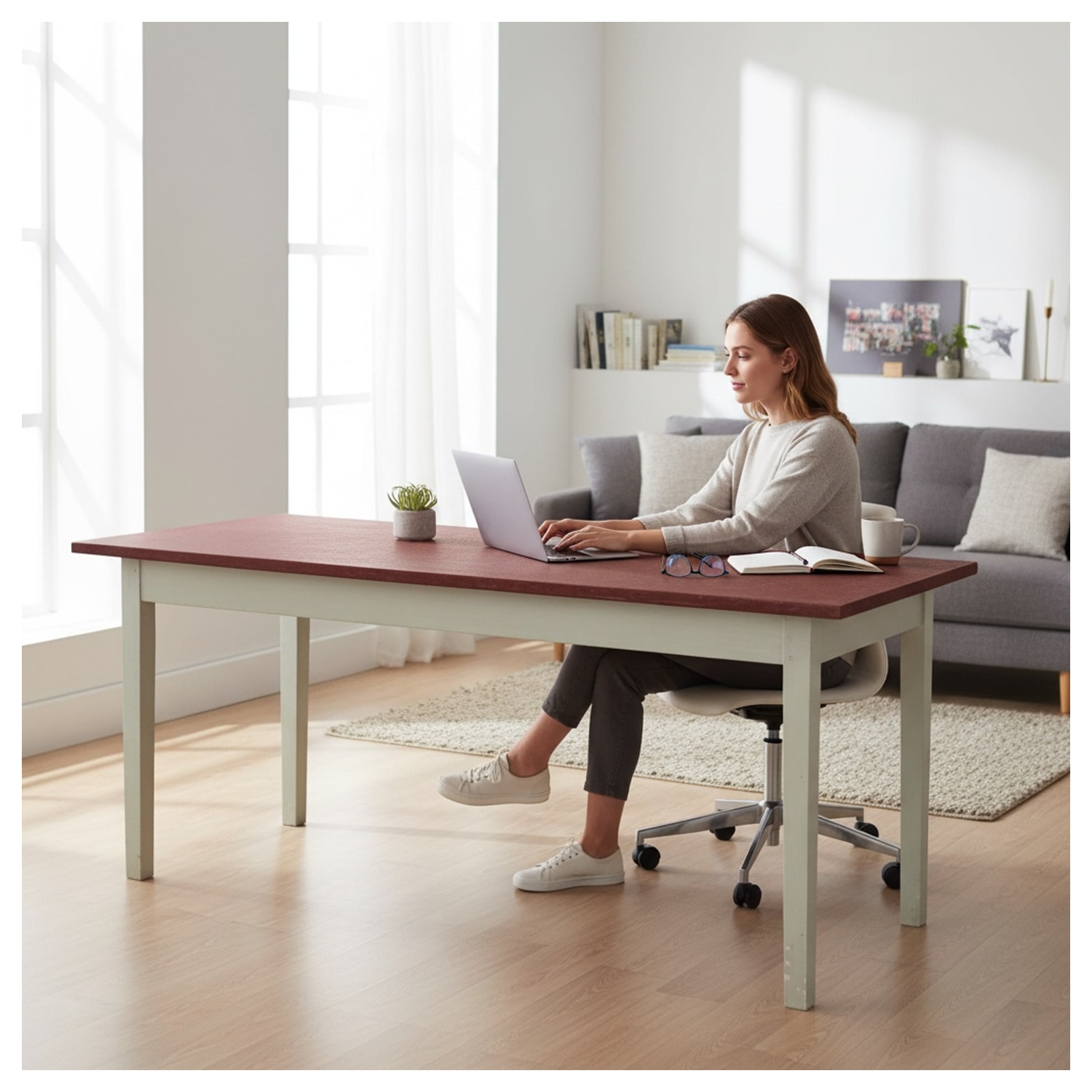 tavolo da lavoro con piano rivestito in tessuto bordeaux