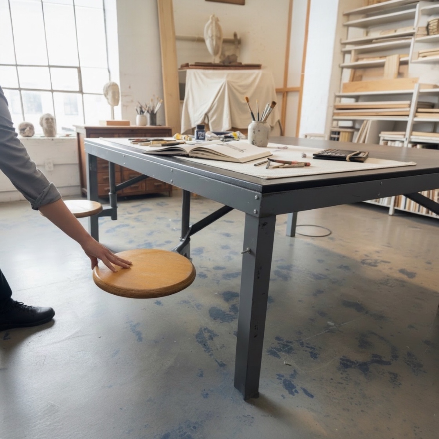 tavolo atelier con piano in juta grezza