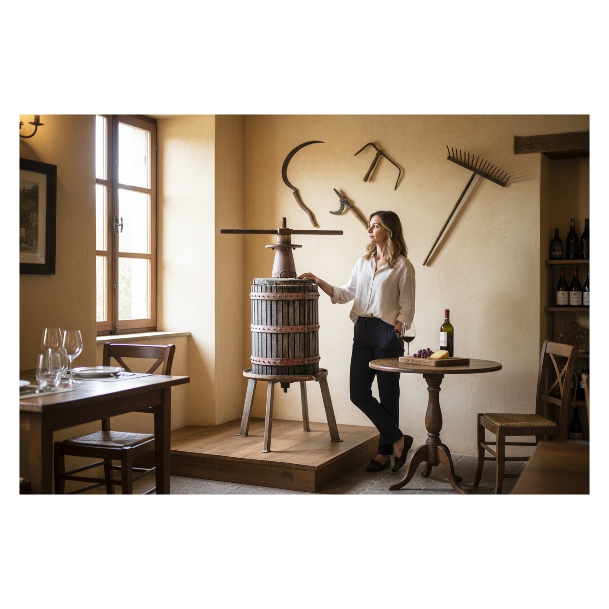 - Oggetto essenziale e simbolo della produzione vinicola rurale italiana e europea, rappresenta un esempio di ingegneria tradizionale contadina con uso di materiali naturali e metallo lavorato a mano. È testimonianza della vita e delle pratiche agricole di fine Ottocento.