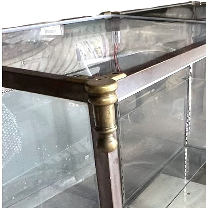 vetrina da esposizione con struttura in ferro ed ottone
