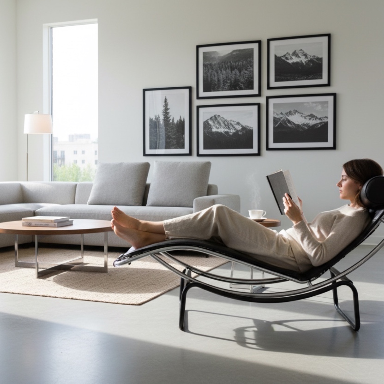chaise longue a struttura tubolare nera