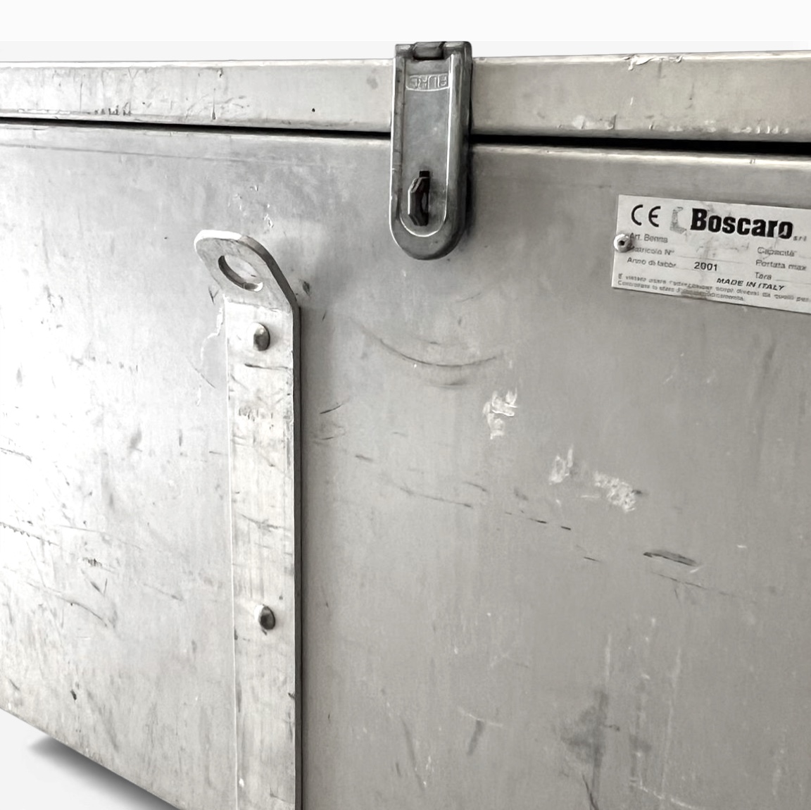 Questo baule industriale in alluminio Boscaro, concepito per trasporti gravosi in cantiere o in eventi catering oggi si reinventa come arredo domestico dallo spirito post-industriale. Le robuste barre di rinforzo e le saldature a vista sono testimonianza di una progettazione funzionale d’alta ingegneria italiana. Il dettaglio curioso: il gancio di sicurezza è lo stesso adottato sui container per trasporto aereo, a garanzia di massima chiusura. Conserva tutti i segni del tempo come veri distintivi di unicità.