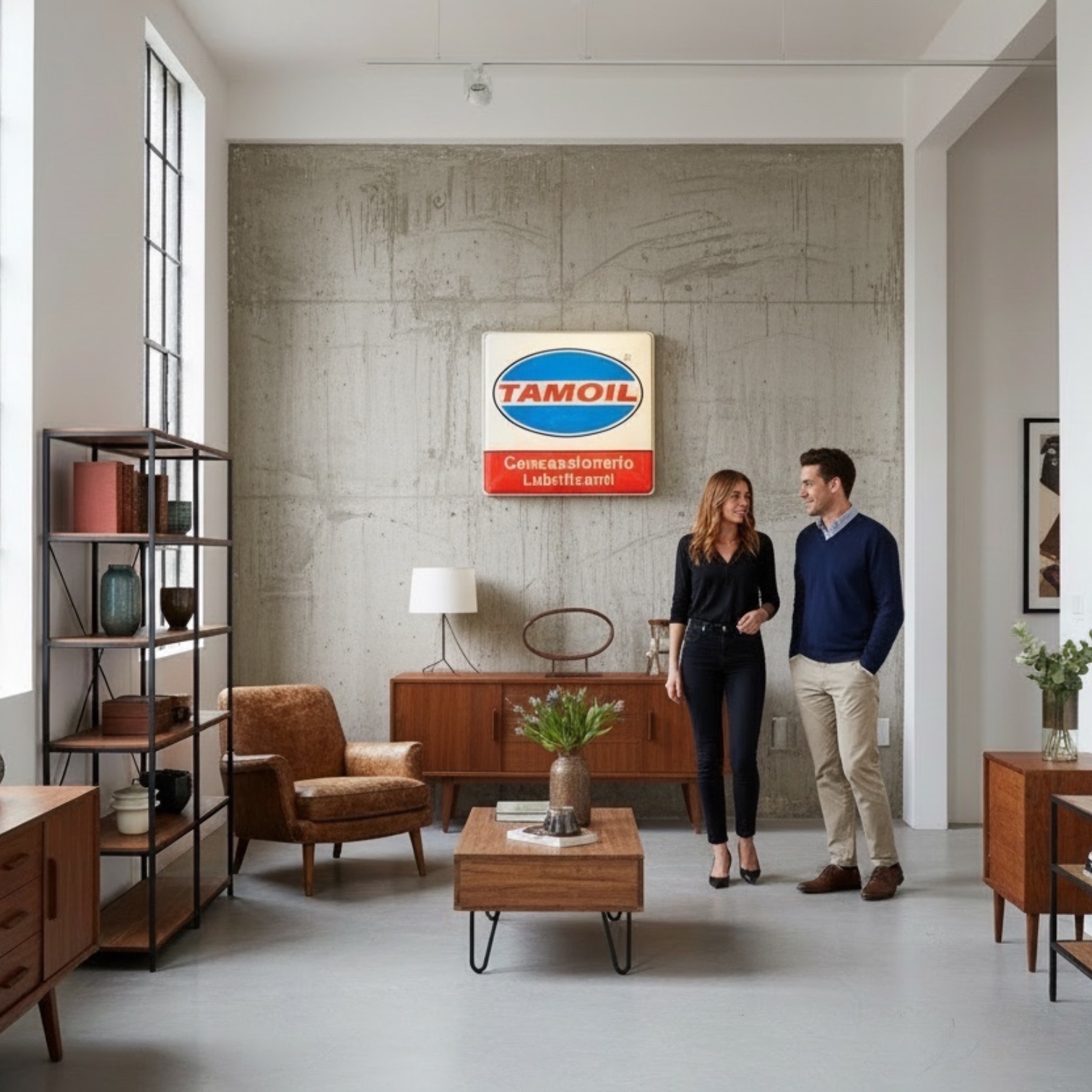 - Per distributori di carburante privati italiani. L'uso di plexiglas e metallo verniciato era innovativo per resistenza agli agenti atmosferici e leggerezza rispetto alle insegne smaltate dei decenni precedenti. Questi pezzi sono oggi ricercati da collezionisti di modernariato e memorabilia petrolifera.