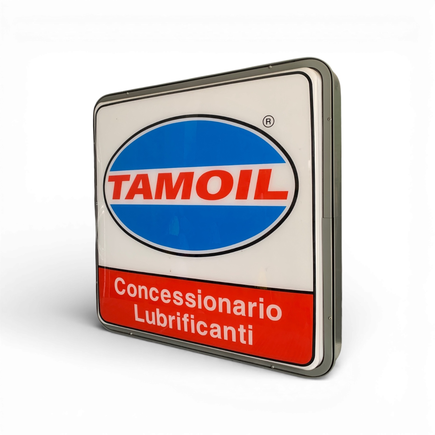 Insegna luminosa originale da concessionario Tamoil, degli anni '70 ancora funzionante. Il plexiglas era preferito per la sua leggerezza e resistenza agli agenti atmosferici.