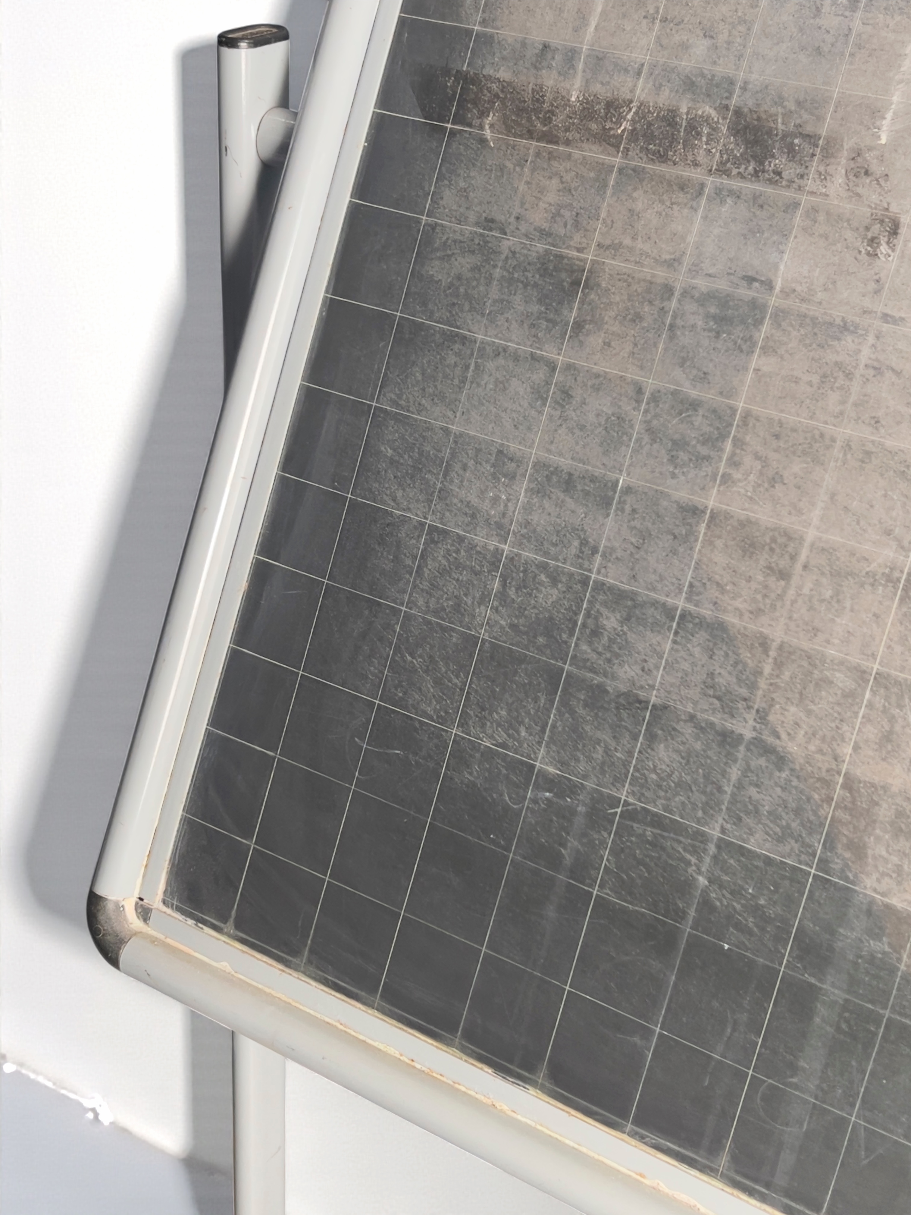 - struttura in metallo verniciato; superfici in laminato nero o verde per scrivere con gesso (alcuni modelli quadrettati), dettagli in plastica ABS nera (manopole, tappi terminali), piedini in gomma