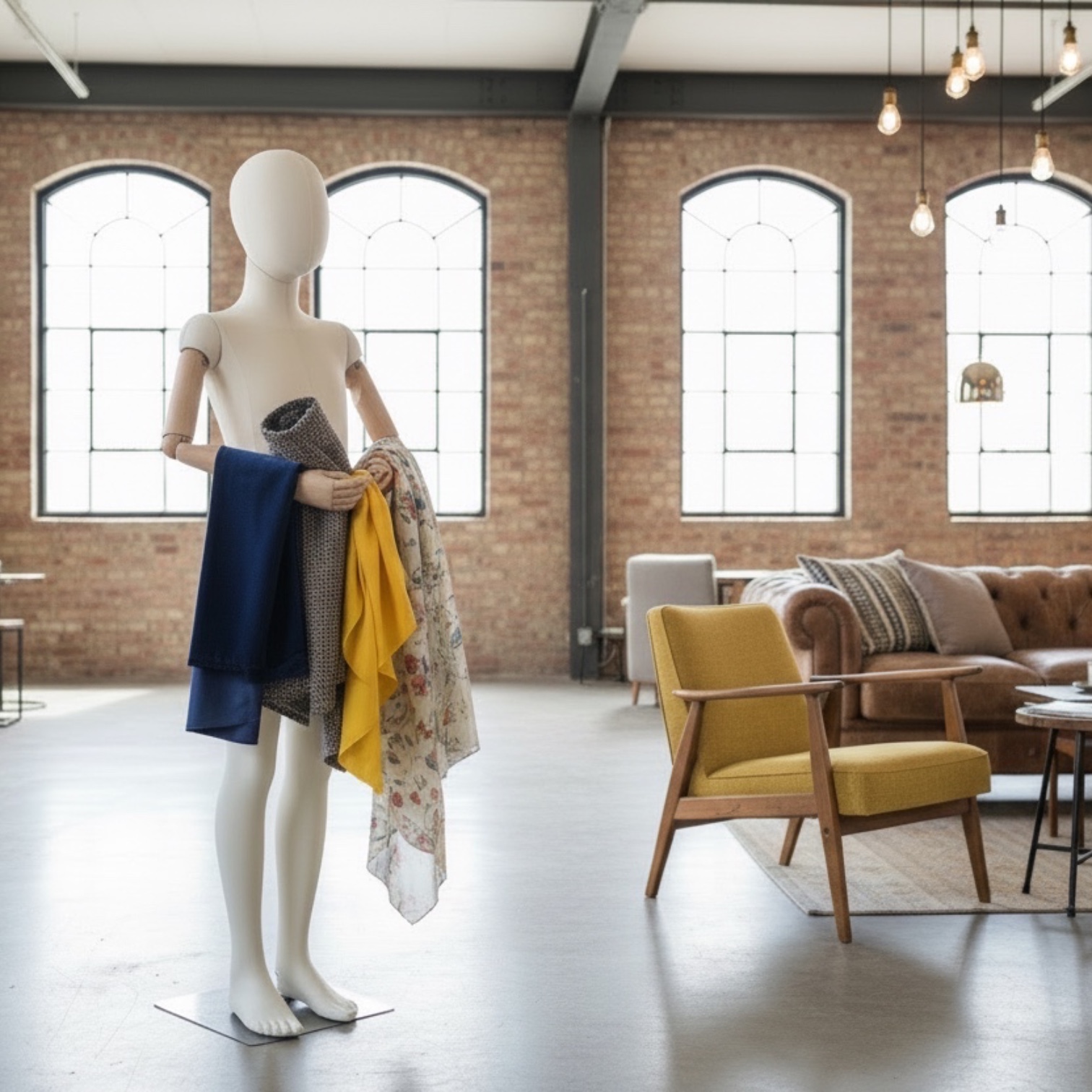 - Manichino tipico del design sartoriale con particolare attenzione alla snodabilità e versatilità espositiva. Rappresenta l'uso innovativo della combinazione di materiali diversi per allestimenti moda e vetrinistica, riflettendo la moda internazionale senza eccessi decorativi facciali.