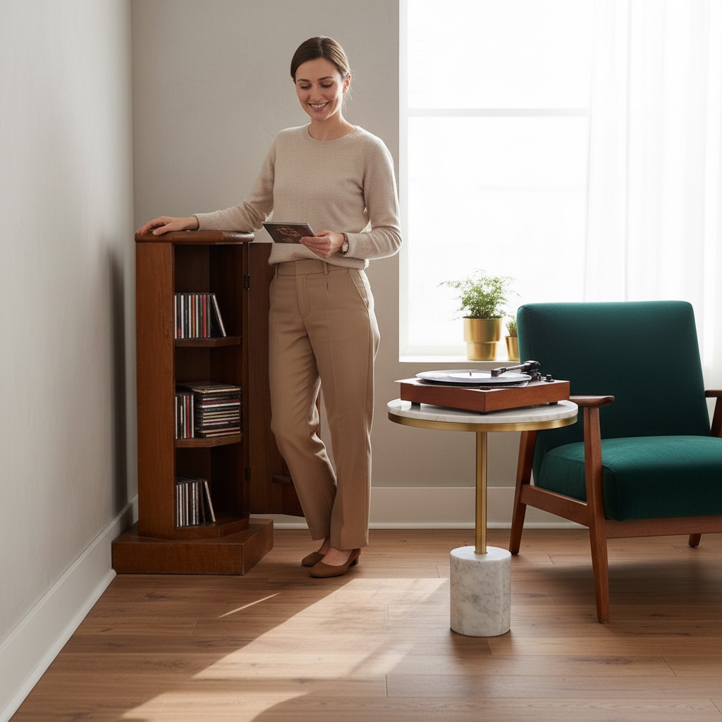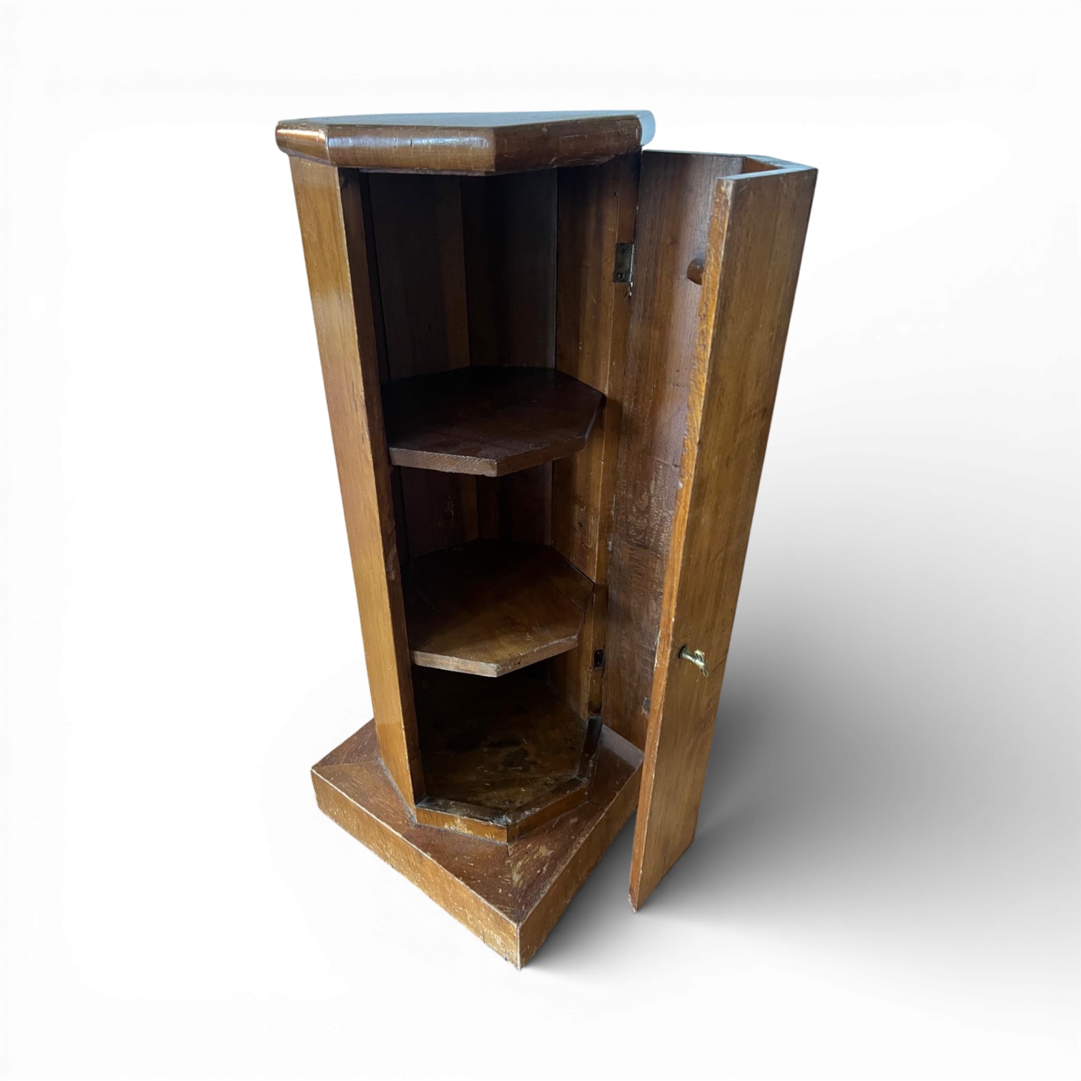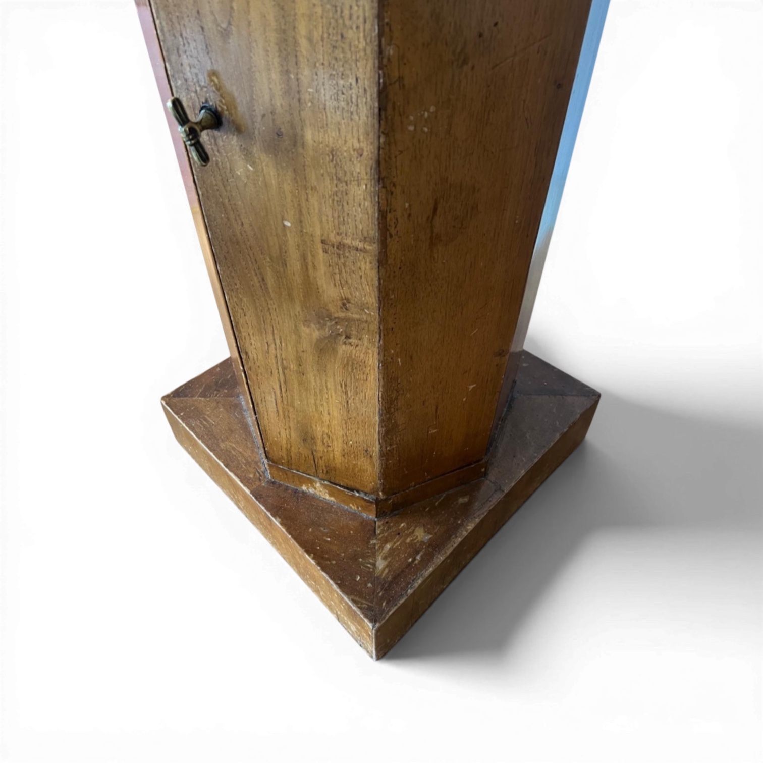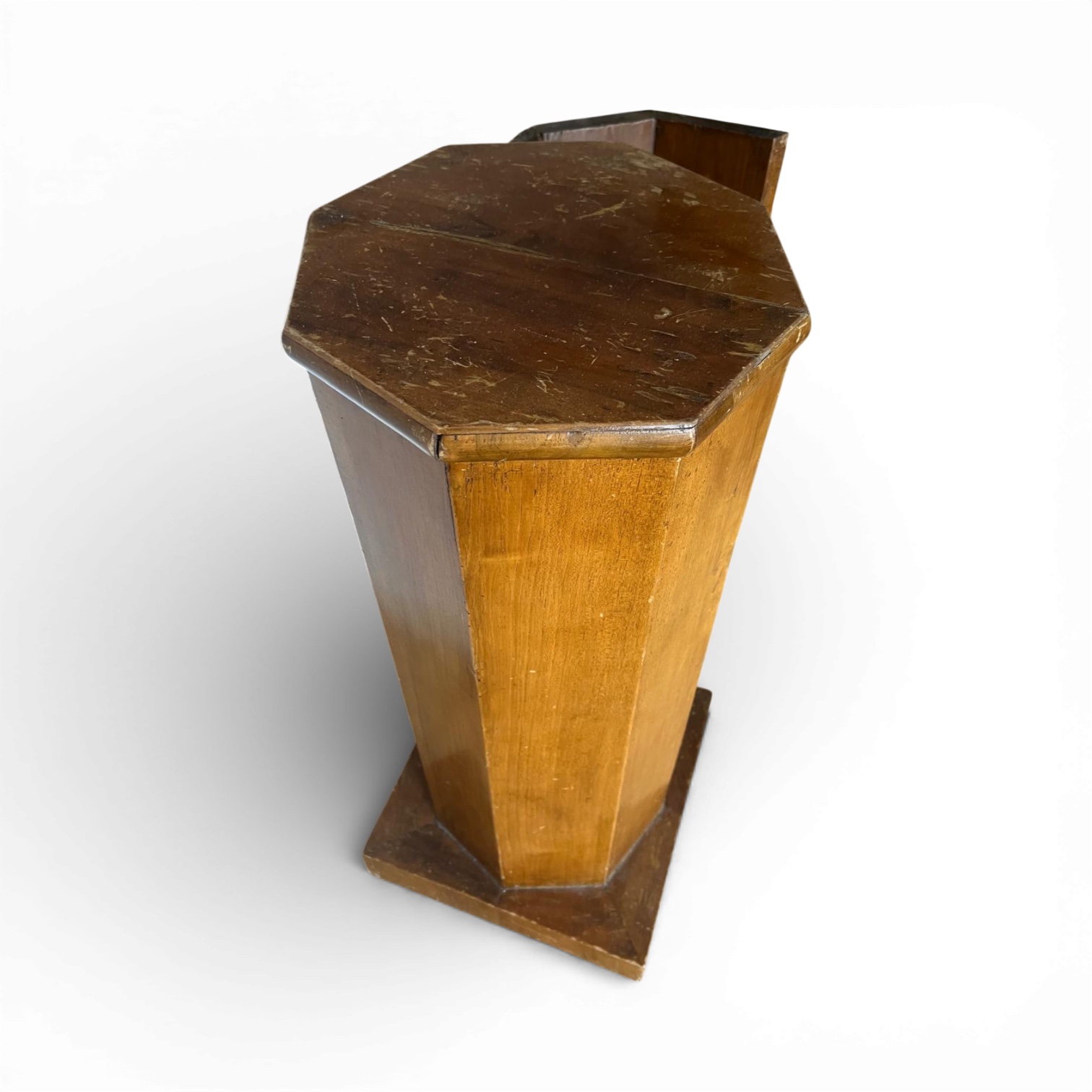 Colonna contenitore ottagonale anni '40, pensato per ottimizzare spazio in ambienti raccolti. Un dettaglio affascinante: la chiusura è affidata a un minuscolo pomello in ottone, probabilmente originale.