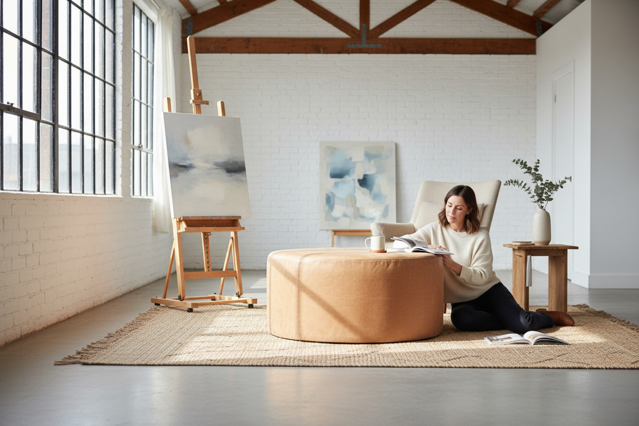 pouf cilindrico in pelle naturale